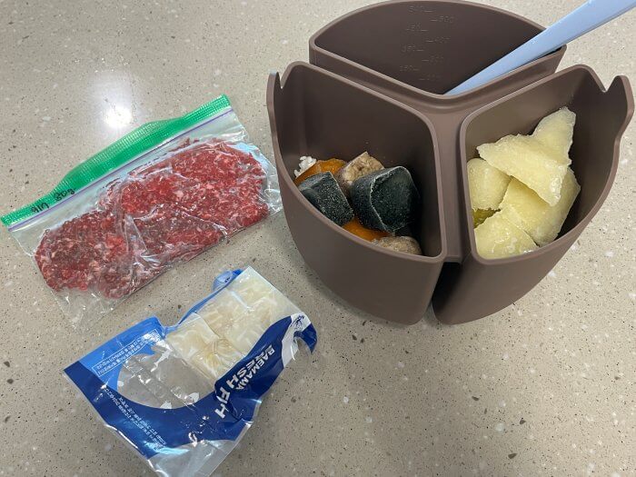안녕하세요 아기상어를 키우는 엄마상어입니다.오늘의 새로운 재료는 '새우'입니다.이전에 새우는 시판이유식으로 살짝 맛을 본 적이 있는데요.알레르기 테스트 겸 다시 제공하고 다음에는 아침으로 제공하려고 합니다.  오늘의 레시피 알려드릴게요. 1. 새우죽= 160g * 3 - 쌀 80g - 채수 210g- 채소큐브(개당 15g) : 애호박 3 + 양파 2 + 두부 3 = 8개- 육류큐브 : 새우 30g (생고기 기준) 2. 닭고구마부추죽= 160g * 3- 쌀 80g  - 채수 210g- 채소큐브(개당 15g) : 고구마 3 + 양배추 3 + 부추 2 = 8개- 육류큐브 : 닭 50g (생고기 기준) 새우는 혹시 몰라 큐브 2개 30g만 넣었어요.이유식모드 20분 취사 돌려줍니다. 첫 취사 이후 섞어준 모습입..