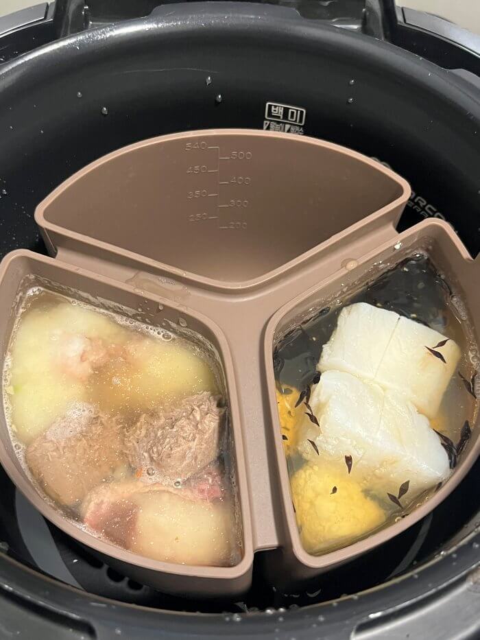안녕하세요 아기상어를 키우는 엄마상어입니다.오늘은 평범한 재료로 이유식을 준비했습니다.  레시피 드릴게요. 1. 닭브로콜리죽= 150g * 3 - 쌀 75g - 채수 150g- 채소큐브(개당 15g) : 무 2 + 감자 2 + 브로콜리 2 + 당근 2 = 8개- 육류큐브 : 닭가슴살 60g 2. 소고기시금치죽= 160g * 3- 쌀 75g - 채수 150g- 채소큐브(개당 15g) : 시금치 2 + 단호박 2 + 새송이버섯 2 + 양파 2 = 8개- 육류큐브 : 한우 80g (생고기 기준/한우 우둔살 칼다짐육)   * 모드는 쿠첸 미작 기준 '만능찜>닭찜' 35분 모드로 취사 1회 (+ 이유식모드 20분 1회 추가 / 잡곡이 덜 익어서) 돌렸습니다. 재료를 모두 넣고 오늘은 진밥을 시도하기 위해 채수를 ..