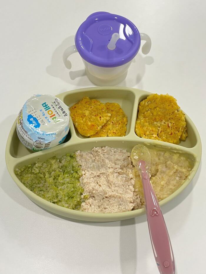 안녕하세요 아기들의 아침이유식에 대해 고민이 많으시죠 오트밀 + 과일만 있는 조합은 혈당을 과도하게 올리는 식사라 정말 아기들에게 좋지 않은 식사이고요.오트밀죽에 단백질, 지방, 유제품 등이 골고루 섞인 식사를 추구해야 합니다. 저는 단백질로는 계란, 두부, 닭고기, 소고기 등을 주고지방은 간간이 아보카도 등 같은 좋은 지방류를 제공하려고 노력합니다. 유제품은 매일 요거트 반개씩 섭취 중이며 이제 곧 한 개로 증량할 계획입니다.아침에는 과일류나 퓨레는 잘 제공하지 않고 야채큐브를 활용합니다. 오트밀죽 (15g + 분유물 60ml) 브로콜리, 닭, 옥수수 큐브 (각 15~20g) 오트밀죽 + 큐브 얹어 전자레인지에 30초씩 2번 유아식 반찬 길들이기를 위해고구마 20g + 연근 15g + 두부 40g + ..