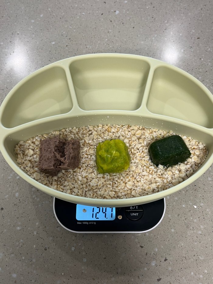 오트밀 15g + 분유물 60ml를 섞고