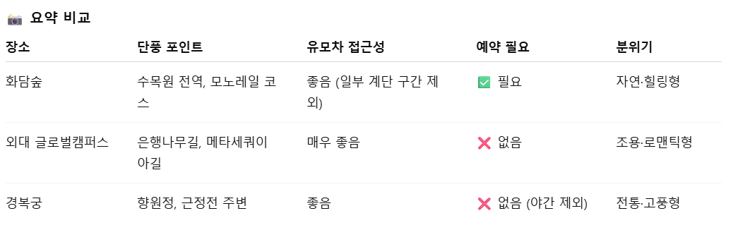 - 붉은 단풍과 고궁 기와의 조화가 압도적으로 아름답다는 후기 다수